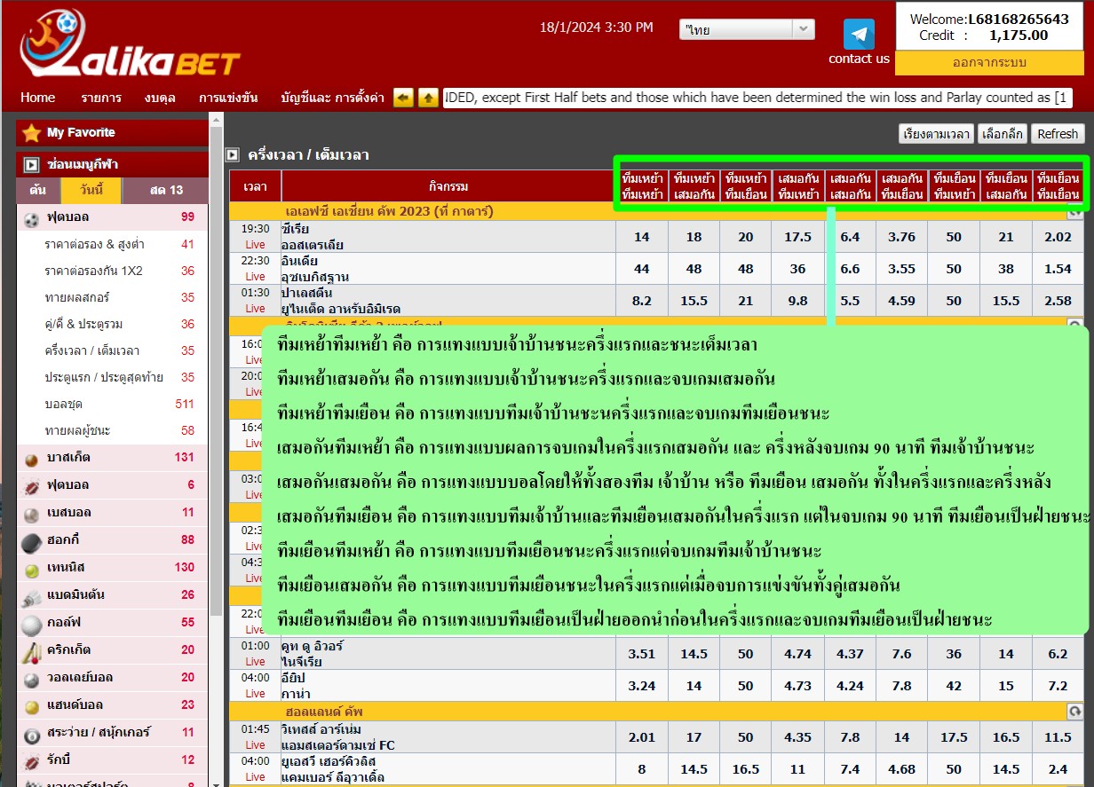 1.H คือ ทายผลแบบครึ่งเวลาแรก